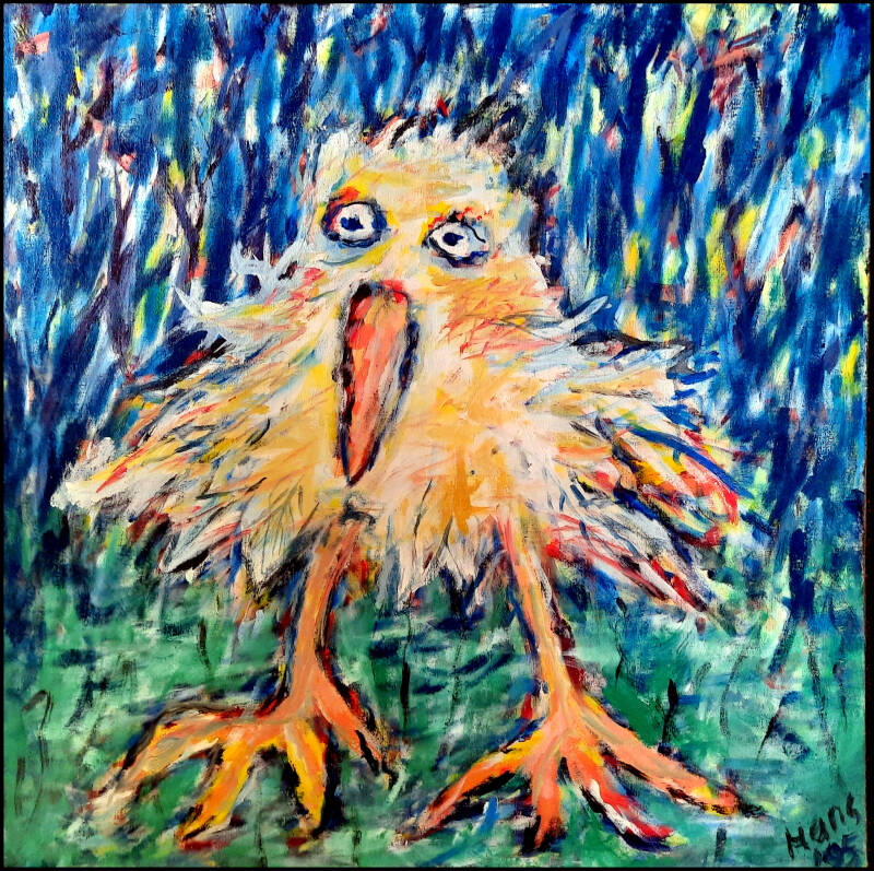 4) Dit kunstwerk heet LELIJKE EEND (APH nr.1960), is 80cm x 80cm. Een van mijn afstudeerwerken van het geillustreerde verhaal van het lelijke jonge eendje.