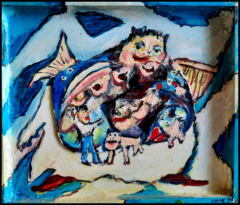 3) Dit kunstwerk heet TANDARTS (AOH nr.1959), is 70cm x 100cm. Het gaat over mijn binding met een tandarts uit Amsterdam die van verschillende vormen van kunst hield.