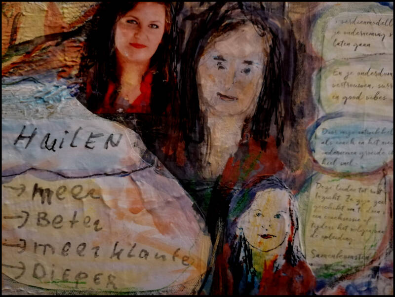 Dit is een heel bijzonder werk waar ik heel veel tijd aan heb willen besteden. Het staat eigenlijk gelijk voor een grote stroom van vrouwen die zeer succesvol geworden zijn en die er ook een heel appart geloof op na zijn gaan houden. Een geloof dat met woorden en een vriendelijk overkomen, mensen massaal kan doen verleiden tot een prettig gevoel. Vooral woorden die direct met betekenis worden benoemd zijn opvallend voor mij en hebben online blijkbaar een hele grote werking laten zien.