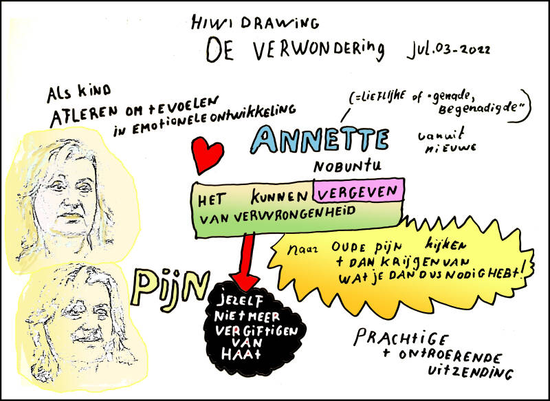 Naar aanleiding van het programma De Verwondering maak ik welelijks HIWI-drawings. Deze tekening maakte ik bij de gast Hans Stolp.