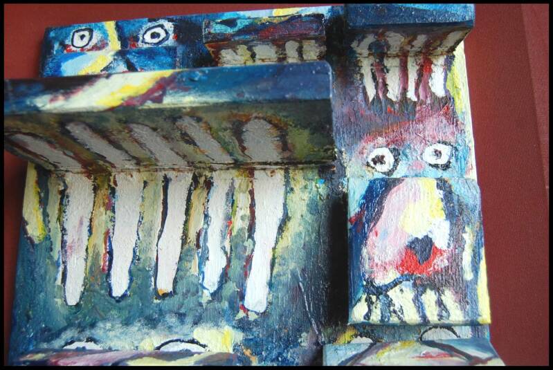 Hieronder een werk die ik maakte naar aanleiding van tanden. Het zijn blokjes die je open kan klappen en waardoor de tanden tevoorschijn zullen komen. Dit werk is overigens ook te koop en gaat eveneens weg voor de prijs van EUR 497,- ( AOH nr.1959-T, 53cm x 55cm) Het is eveneens afgeprijsd en was EUR 850,-