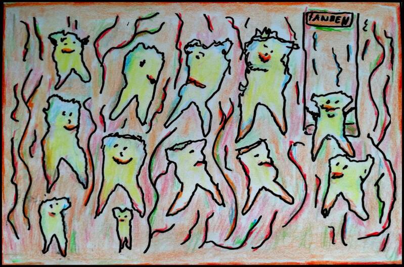Ook met tandartsen of liever gezegd tanden ben ik veel bezig geweest. Hierboven een tandarts die ik zelf ooit in Amsterdam-Zuid heb gekend. Hij hield van klassieke muziek en dat vond ik erg leuk en stelde me op mijn gemak.